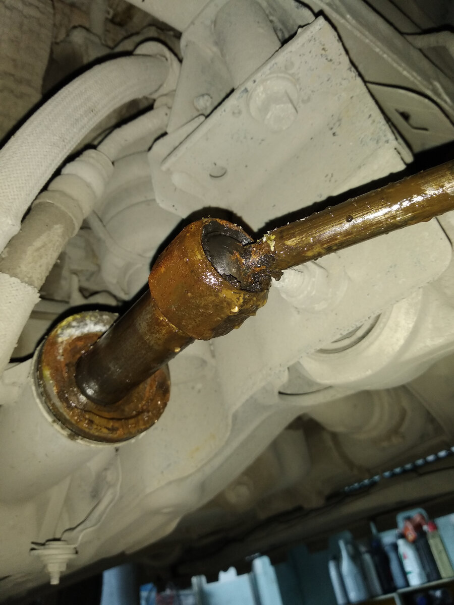 Приветствую! Спасибо за проявленный интерес!!! Хочу показать некоторые неисправности рулевых реек с гидроусилителем, с которыми я сталкивался в своём опыте и объяснить причины их возникновения. 1. Самая простая, но иногда незаметная - порванный или протертый пыльник рулевой тяги. Вода с грязью попадает внутрь механизма. Тяга ржавеет, рулевой вал рейки ржавеет, что приводит к повышенному износу уплотнения вала и его течи. Снаружи этого не видно!!!. В данном случае причиной было очень маленькое отверстие в пыльнике и это привело к таким последствиям. Теперь потребуется ремонт рейки со шлифовкой вала, заменой рулевой тяги и пыльника. Внимательный осмотр при ТО исключил бы такой сценарий развития событий!!! 2. Износ уплотнений центрального вала: Жидкость попадает из внутренних камер гидроцилиндра в пыльники и наполняет их до такого состояния, пока они просто не лопнут при повороте руля. Снаружи ничего особенного только небольшое пятно. Пыльник сидит настолько плотно, что жидкость практиче