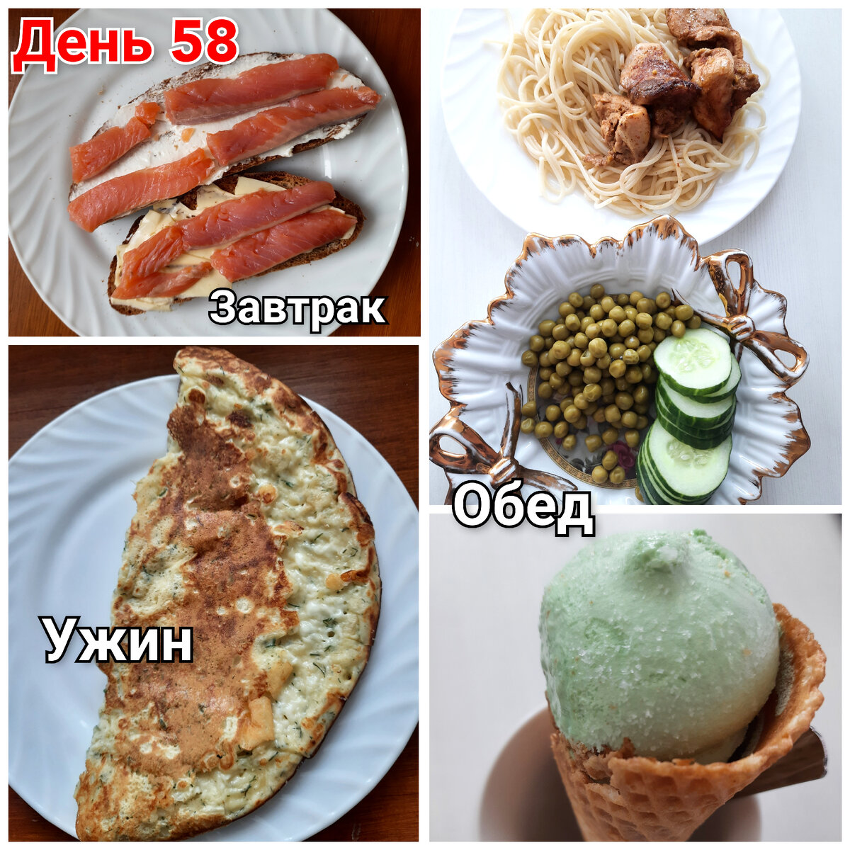 #Завтрак – кофе со сливками и сахзамом. Дарницкий хлеб на гриле. 1й тост - с творожным сыром, 2й – со сливочным маслом. И слабосоленая семга. #Обед – вермишель твердых сортов пшеницы, огурец, консервированный горошек. #Филе бедра (продают уже без косточек) в духовке – обмазываю каждый кусок аджикой, солю, даю немного промариноваться. Ставлю в духовку при 180 градусах на минут 40. Выделилось много сока. #Аджика у меня не слишком острая была, но она хорошо чувствовалась. Мне понравился такой вариант мяса – и сочно и пряно, и цвет такой красивый – золотистый, как будто корочка. #Десерт– фисташковое мороженое. #Ужин – сырный #омлет. 2 яйца, пара ложек сливок 10%, замороженный укроп, потертый сыр – все взбиваю и обжариваю на сковороде. Мой Инстаграм - Меню дневник