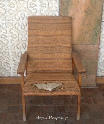 Добрый день, мои дорогие любители старины и переделок! С вами Марья-Искусница! Сегодня - моя любимая тема "Бабушкины сокровища"! Я думаю, многим знакомы такие "бабушкины" кресла, они были практически в каждой советской семье. Теперь мода на них вернулась, и эти кресла один за другим обретают новую жизнь и возвращаются в наши интерьеры. Благо, сделаны они были на совесть и обновить такие кресла под силу каждому, даже без применения каких-то особых инструментов и навыков. Именно с этого кресла начался мой период переделок, который длится до сих пор. Хотя этот предмет мебели почти полностью обновил мой муж, я только выступала идейным вдохновителем, ну и немного помогла в некоторых моментах. Если посмотреть цены на подобные кресла в интернете и в магазинах, то появится дополнительный стимул для переделки! Итак, что было сделано: 1. Кресло разобрали, не забывая прибрать все запчасти, винтики, гайки в одно место, чтобы не потерять; 2. Зачистили подлокотники и ножки от старого лака (шли