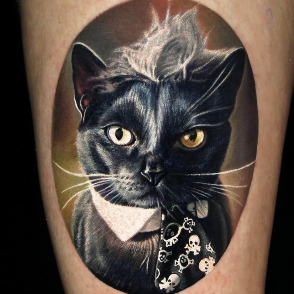 Кот — животное, живущее бок о бок с человеком с незапамятных времен и имеющее очень переменчивый, противоречивый и таинственный характер, повадки, которые человеку не удалось понять до сих пор. Тату кот значение: Маленький котенок — символизирует нежность, пробуждает воспоминания о славных детских годах. Чаще всего такие эскизы выбирают девушки, мало того, что татуировка украшает тело, еще она подчеркивает то, что обладательница тату добрая, трогательная натура. В большинстве случаев изображение кота связывали с природными магическими силами, своеволием и влиянием Лунных циклов. Кота считают ночным животным, в китайской философии его отождествляют с женским началом, энергией инь, тьмой, луной. Именно поэтому девушки, украшая тело рисунками грациозного животного, стремятся подчеркнуть силу своего обаяния, красоты, душевности. Для этого выбирают эскизы стройных, изящных образов, отображающих сексуальную раскрепощенность, желание нравиться и привлекать внимание мужчин. Кот, ловкий и муску