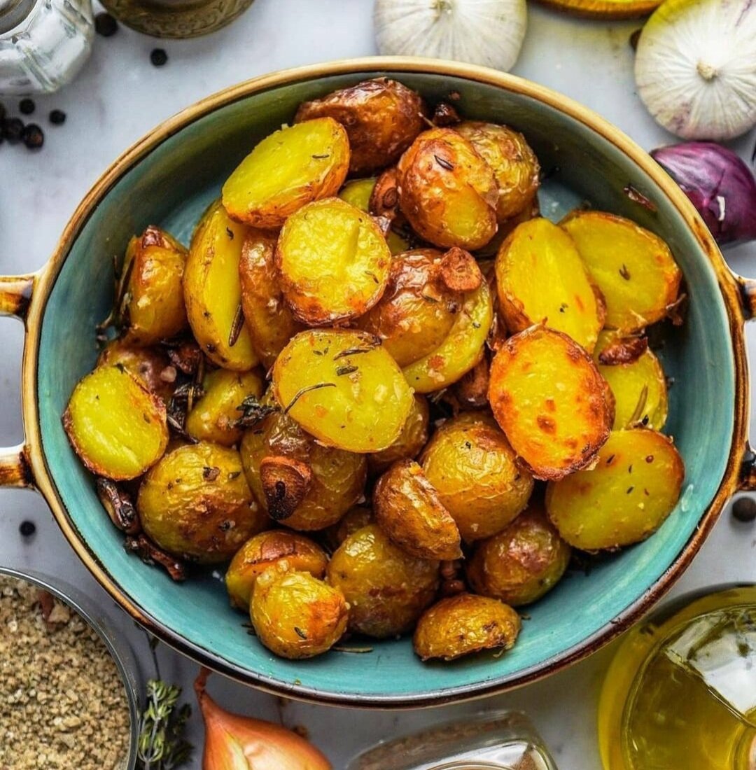 Привет! Сегодня будет простой рецептик аррроматной и невероятно вкусной картошечки. Рецепт: Картошка - 300 гр. Растительное масло - 4 ст.л. Чеснок - 3 зубчика Розмарин - 2 веточки Тимьян - 3 веточки Соль, перец - по вкусу 1. Для начала отвариваем картофель, предварительно нужно хорошенько промыть (не чистить!). Воду подсолить, варить минут 10 в кипящей воде. 2. Даём картофелю немного остыть, затем нарезаем на кусочки (я резала на половинки, можно на кружочки, дольки, палочки, как угодно). 3. Смешиваем в миске с оливковым маслом, нарезанным чесноком, тимьяном, розмарином, солью и перцем. 4. Разогревать духовку до 200°С. Аккуратно выложить картофель на противень и запекать 20 минут с одной стороны, после перевернуть и запекать ещё 10 минут. Приятного аппетита! Вкуснейшая картошечка готова! Подписывайтесь на мой канал и следите за новыми статьями!