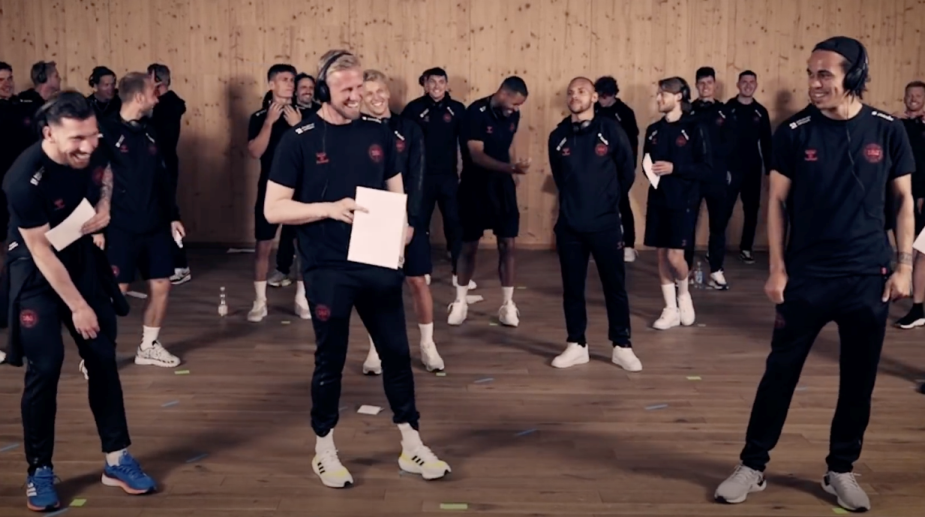 Сборная Дании по футболу во время подготовки к Евро-2020 в полном составе записали песню для болельщиков. Она называется "Датский Динамит", петь футболистам помогает местная поп-группа Alphabeat. Первый куплет песни исполняют Пьер-Эмиль Хейбьерг, Каспер Шмейхель и Юссуф Поульсен. В клипе, который вышел на ютубе у Alphabeat, мы также увидели Кристиана Эриксена с воображаемой гитарой. Желаю здоровья Кристиану Эриксону.