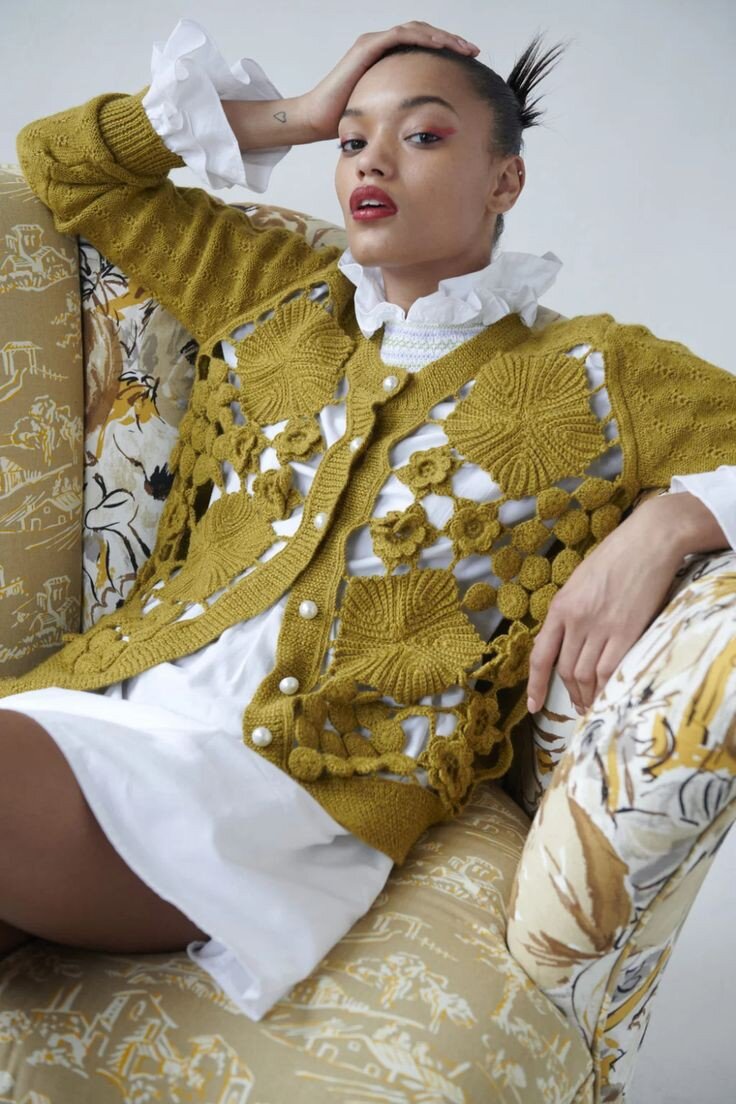 КРОШЕ- это техника вязания крючком, которой характерна воздушна фактура и множество сквозных дырок. Дословно КРОШЕ переводиться как "маленький крючок". Родина Кроше-Шотландия. Но миру ее представили впервые в Голландии, в 1823 году, подробно описаны в журнале Penelope. На подиумах КРОШЕ появилась в 2011, с лёгкой руки Кристофера Кейна. Затем идею подхватили в Moschino. С тех пор КРОШЕ с завидным постоянством возникает на модном горизонте. Новый пик популярности вязаных вещей пришелся на 2021. В сезоне весна-лето 2021 КРОШЕ можно было встретить на показах Dries Van Noten, Burberry, Hermès, Fendi и Jil Sander. Сегодня такими вещами завалены все магазины, начиная от масс маркета, заканчивая тяжёлым люксом. Гуляя по Stradivarius я решила исследовать ассортимент на предмет модных вязаных вещичек. Их оказалось немало. Разных цветов и разных фактур. С подкладками и без. Носить кроп- топы можно на голое тело, либо на рубашку (в таком случае, кроп-топ должен быть бОльшего размера) Для т