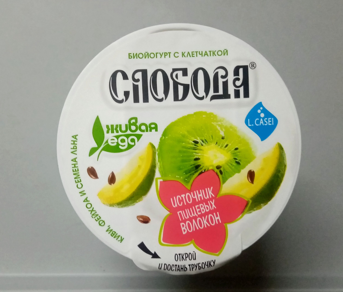 Биойогурт "Слобода" с киви, фейхоа и семенами льна. Стал моим любимым.