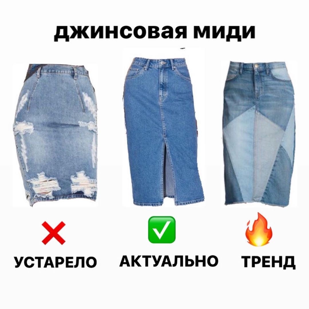 Сегодня в этой рубрике мы разбираем юбки. ✅ Актуальные вещи - это то, что не выходит из моды и надолго остаётся в гардеробе. На сегодняшний день это лаконичный полуоблегающий крой одежды и главное минималистичный дизайн. 🔥 Тренд - это то, что сейчас находится на пике популярности, продаётся во всех магазинах массмаркет и люкса. На сегодняшний день тренды - это всевозможные завязки, вырезы, верёвки, жгуты, пэчворк, асимметрия, ассиметрия и прочее. ❌ Устаревшие вещи- это вещи не актуальным фасоном, но они до сих пор продаются в магазинах.