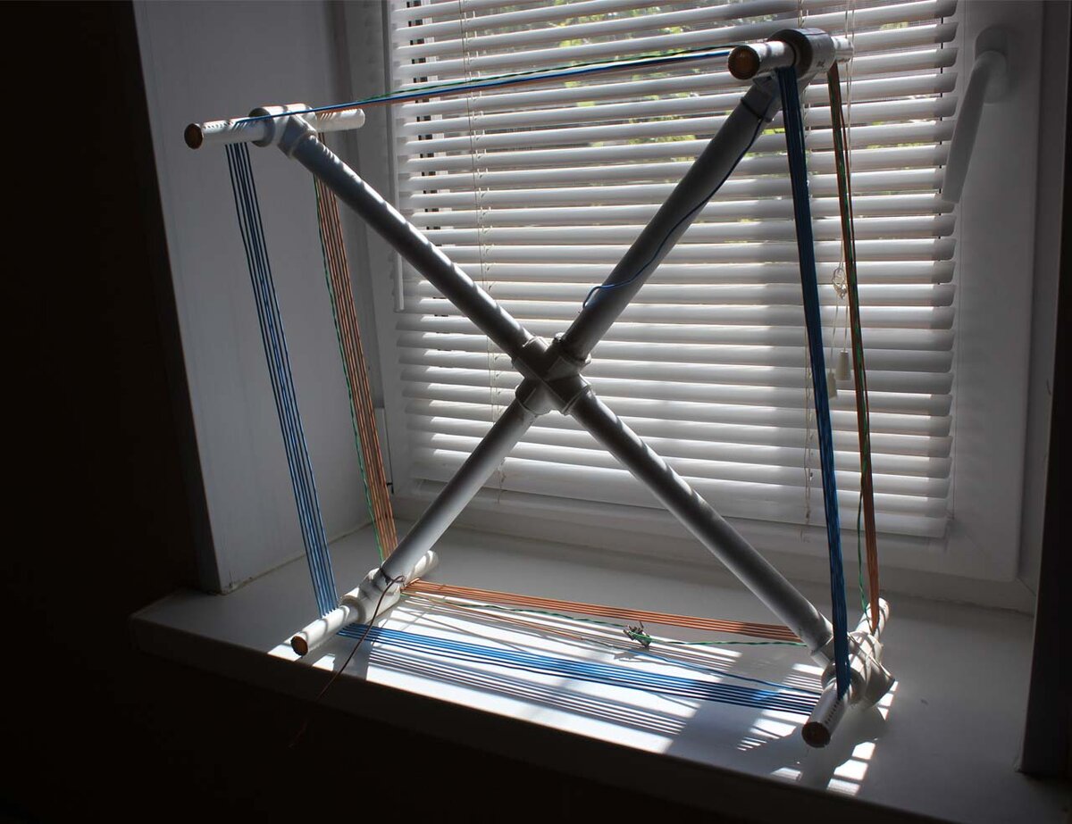 Описанная в основной статье рамка обладает очень маленькой эффективностью. Дальность передачи с ней не превышает 3-4 метра. И вот захотелось мне проверить, что можно получить от этой схемы, используя рамочную антенну посерьезнее. Тем более такая антенна у меня уже была. Пару лет назад делал ее в попытках бороться с помехами при приеме на длинных и средних волнах. Каркас рамки собран из пластиковых труб, диаметром 20 и 25 мм и тройников. Длина каждой стороны 46 см. Антенна намотана проводом ПВС диаметром 1 мм. Количество витков – 12. И еще один виток катушки связи. Индуктивность такой рамки примерно 140 мкГн. Схемы подключения и согласования антенны взяты из статьи на CQHAM.ru Передающие магнитные рамочные антенны. Я проверил три варианта включения антенны. Настройка контролировалась с помощью осциллографа с включенным делителем напряжения 1:10. Вариант 1. В таком варианте включения рамка легко настраивается в резонанс, при котором амплитуда переменного напряжения на