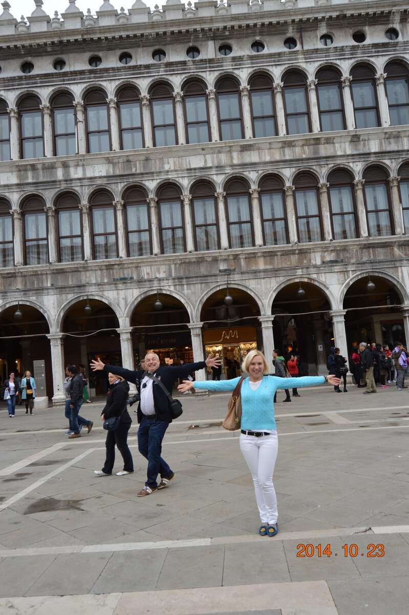 День второй! Или как добраться до отеля в Венеции. Первое утро в Италии началось с отсутствия горячей воды !!! Такой подлости я от итальянцев не ожидала, наскоро приняв ледяной душ и погревшись феном, мы пошли завтракать, прихватив с собой чемоданы. Хозяин гостиницы, ни слова не говорящий по-английски, сварил нам капучино и предложил круассаны. Жизнь потихонечку налаживалась. Нас доставили до вокзала и пожелали удачи... Видать плохо пожелали, так как удача в тот день явно была в другом месте. Мы достаточно легко нашли кассы и были порядком ошарашены, когда стоимость билетов на местные электрички оказалась 70 евро:))) к слову сказать, электрички не были чем-то особенным, разрисованные и как оказалась часто ломающиеся... Но пока мы об этом не знали, и пошли искать перрон, с которого отправлялся наш поезд. Перрон мы нашли сразу, поезд уже стоял и в него активно садились люди. Мы тоже пошли на посадку, но вспомнили, что билеты надо прокомпостировать. Я осталась на перроне, пока Женечка побежала искать компостер. Тут я испытала второй шок за день, когда на моих глазах, из поезда выскочила тетенька, свистнула в свисток и поезд поехал!!! Без нас!!!! Потом конечно выяснилось, что это был не наш поезд, что почти все поезда там проходят и останавливаются лишь на пару минут, но в тот момент..... Не буду приводить весь лексикон, который пронесся в моей голове. В общем дальше все пошло достаточно спокойно, мы даже благополучно пересели из одного поезда в другой, выпили кофе и любуясь пейзажами за окном, за 3,5 часа домчали до Венеции. Венеция встретила нас пасмурным небом, но выйдя из здания вокзала мы всё равно были очарованы. Перед нами был гранд канал, по которому в разные стороны двигалось огромное количество лодок и лодочек, вокруг была суета, как будто мы подошли к автомагистрали, которой по сути и является канал. Паром, который должен был доставить нас на площадь Сан-Марко, оказался рядом, мы быстро купили билеты и погрузились на него, как в маршрутку в час пик в Питере. Эти паромы исполняют роль маршруток, ходят по гранд каналу в обе стороны, доставляя людей на работу и с работы, туристов к отелям, они являются просто общественным транспортом. По пути мы охали и ахали, вызывая улыбки у местных и понимающие улыбки у таких же туристов. Город очаровывает, есть в нем загадка, он пожалуй превзошел все мои ожидания. Я до сих пор не могу постичь, как люди живут на воде, когда крыльцо — дома-это причал, когда на лодках развозят товары и строй материалы, когда нет машин, вообще нет, совсем... Только лодки, лодки полиции и скорой, ремонтников, такси, частные...не реально :) когда через 20 минут, наш паром причалил на площади Сан Марко, я все еще пребывала в эйфории и шоке. Вокруг сновали гондолы, гондольеры одеты в тематические костюмы, вода в канале красивого цвета, а не грязная, как я почему-то себе представляла. Толпы туристов, со всего мира, порой одетые в национальные одежды, выглядящие в этом пейзаже еще более экзотично. А здания, казалось, построены прямо на воде, все это вызывало детский восторг. Когда на несколько минут появилось солнышко, город вокруг преобразился, вода стала светло-зеленой, все здания яркими, такое впечатление, что тебя поместили в центр открытки. Вот с такими эмоциями мы сошли на берег, и тут поняли, что совершенно не знаем, в какой стороне наша гостиница. Мда