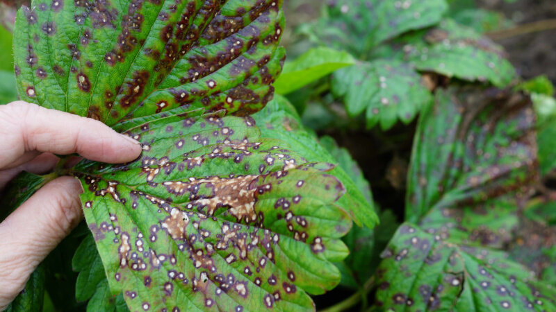 Что делать, если листки сменили цвет с зеленого на желтый, красный или коричневый? Это значит, что клубнике нужна немедленная реабилитация. Каждый окрас говорит об определенной болезни, поэтому их стоит изучить подробнее. Белые Причиной этого заболевания является рамуляриоз (популярная болезнь). Для опрыскивания рекомендуют применять 1% бордоскую жидкость или ее аналоги. Процедуру нужно проводить только перед распусканием цветочков или после сбора урожая. Также рекомендуется удобрять почву минеральными удобрениями. Стоит помнить! Обрабатывать листик следует и сверху, и снизу. Рыжие (ржавые) Причиной является ржавчинный грибок. Следует оборвать и уничтожить места, покрытые пятнами. Остригать их рекомендуется над чем-то (какая-то ткань), чтобы споры грибка не попали на здоровые саженцы. Рекомендуется не садить растения рядом с зараженными, чтобы избежать появления грибка. Необходимо обеспечить щадящий полив, избегая разбрызгивания воды. Также рекомендуется регулярно ухаживать за участкам