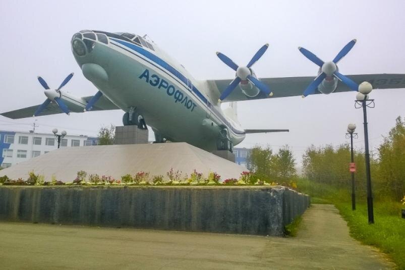Решением Магаданского горисполкома № 366 13 июня 1977 года Магаданскому управлению гражданской авиации разрешено установить самолет АН-12 на пьедестале в районе аэропорта 56 км, как символ заслуг в освоении Северо-Востока СССР https://magadanmedia.ru/time/events/4921/