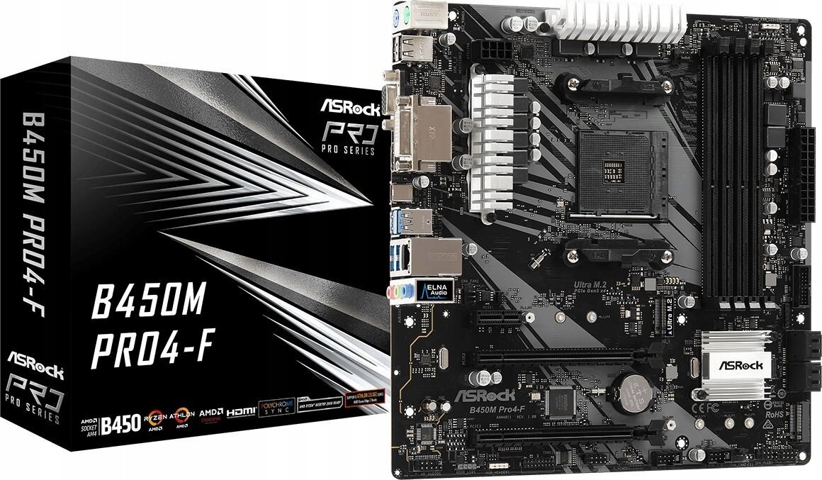 AsRock B450M Pro 4-F. За свою цену данная материнская плата станет отличным приобретением . Не имея узких мест в конфигурации компьютера , эта плата в паре с процессорами Ryzen 5 1600 AF и Ryzen 5 2600 позволяет собрать игровой ПК среднего сегмента . Характеристики : 1) Чипсет - В450 2) Сокет- АМ4 3) Форм-фектор- мicro ATX 4) Слоты памяти DDR4- 4 шт ( 2133-3200 МГц ) 5) Слоты М2- 2 шт