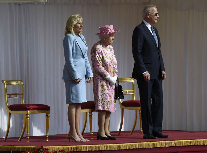 Президент Соединенных Штатов Америки Джо Байден и его супруга Джилл, пьют чай с королевой Елизаветой II в Виндзорском замке