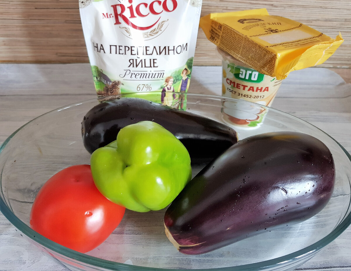 Добрый день, дорогие мои читатели. Сегодня, проходя мимо овощного отдела в супермаркете, я заметила, как мне улыбается молодой блестящий во всех смыслах этого слова баклажан. Глядя на него, вспомнила, что утром в холодильнике также завлекательно улыбались мне помидор и кусочек голландского сыра. "Пора бы им всем встретиться в одном блюде," - подумала я и решила поддать им жару. В духовке. Итак, сегодня будем готовить запеченный веером баклажан с помидорами и сыром. Ингредиенты: -2 молодых симпатичных баклажана -1 серьезный помидор, лучше розовый, и чтобы родом был из Азербайджана или Узбекистана -1 плод болгарского сладкого перца -2 столовые ложки 10%-ой сметаны -2 столовые ложки майонеза -4 чайные ложки томатной пасты или кетчупа -100г твердого сыра, можно и сулугуни взять -соль и специи по вкусу -1 зубчик чеснока Рецепт: Овощи промываем. Баклажаны разрезаем вдоль пополам и замачиваем в холодной подсоленной воде минут на 30. Так из них выйдет горечь, они будут еще вкуснее. Помидор
