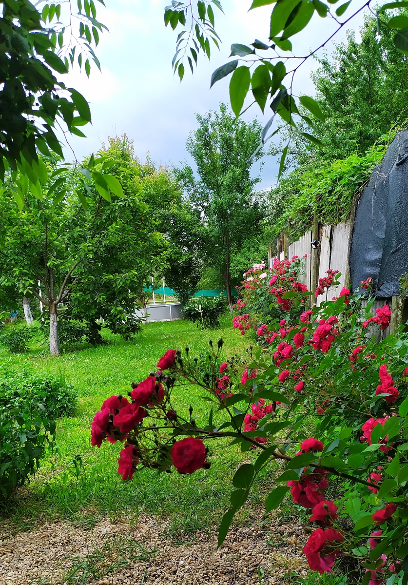 У меня была неделя отпуска этим летом, я запланировала сделать кое -какие дела и пару дней провести на море . Только мои планы насчёт моря не состоялись и мы с мужем решили,раз такое дело ,навестить близких родственников в деревне. Скорее всего многие связывают деревню с огородами и ранними подъёмами до зари. Только это не в нашем случае! Не было огорода с картошкой,которую нужно полоть. Мы наслаждались! Вот именно! Погодка наладилась,не было жары ,иногда срывался лёгкий дождик,но лишь для того,чтобы освежить зелень в саду. Приусадебный участок засеян травкой,дорожки засыпаны галечкой,розы радовали глаз не только своей роскошью,но и невероятным ароматом. Сочная зелень,шашлычок,гитара,близкие люди,которые тебя понимают,любят и с которыми легко и непринужденно.Это так наполняет душу каким -то чистым воздухом, что понимаешь, что хочешь быть здесь и сейчас и нигде больше! А кроме того, я так мечтала увидеть ромашковое поле, и оно оказалось рядом! Как всё-таки прекрасна сельская местност