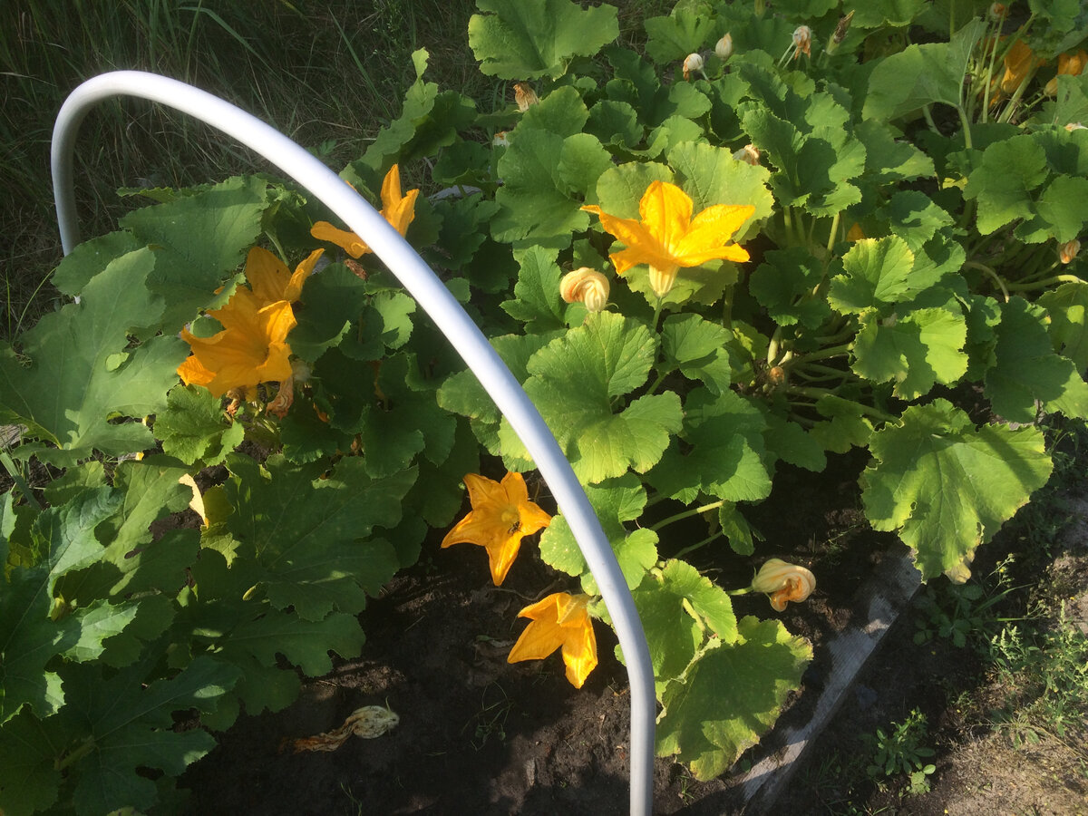 Кабачки цветут, есть и мужские цветки и женские, но завязей остаётся мало. Цветки вянут и опадают. Как увеличить количество завязей? Хочу рассказать. что я предпринимаю для этого. Совсем для новичков в огородном деле хочу пояснить, что цветы на кабачках образуются на женских и на мужских завязях. Мужские - это просто цветок на длинной тонкой ножке, а женские - это цветок на кончике небольшого плодика. Если происходит опыление, то плодик на женской завязи продолжает развиваться. Если опыления нет, то плодик после того, как цветок завянет, просто отпадёт. Опыление зависит, конечно же от пчёл. Если стоит хорошая солнечная погода, много цветов, пчела садится на мужской цветок, на лапках остаётся пыльца. Потом она перелетает на женский цветок и переносит на него на своих лапках пылцу. Происходит опыление и плод продолжает развиваться. Сначала появляются мужские цветы. Их обычно бывает много. Они как-будто заманивают пчёл. Потом появляются женские завязи. Если женских завязей мало, о это