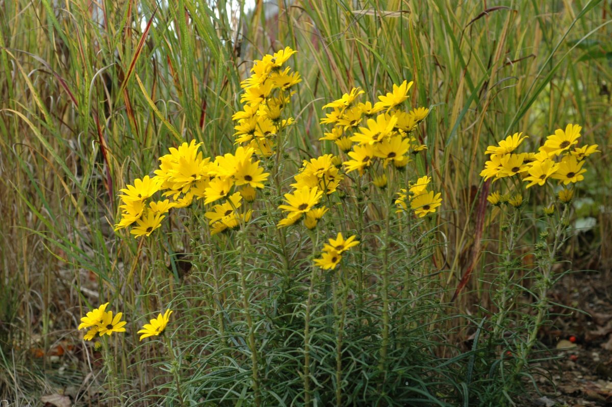 1. Подсолнечник иволистный. Подсолнечник очень высокое растение, так что если на вашем участке есть какая либо неприглядная постройка, стоит рядом с ней высадить подсолнечник. Он любит солнечные места, только в таком месте будет очень обильно и долго цвести. 2. Рудбекия. Самое неприхотливое растение, не потребует совсем ухода, достаточно только будет ее высадить на солнечном месте. Рудбекия, достаточно высокое растение, может вырасти более 1,5 метров – это стоит учитывать при составлении композиций в саду. 3. Книфофия. Соцветия у книфофии длинные и очень яркие. Для этого растения самое главное не допустить застоя влаги у корней. В остальном книфофия к уходу нетребовательна, будет очень долго и красиво цвести. 4. Пионы тонколистные. Нежное растение, во время цветения на кустике распускается множество цветов. Но и после цветения пионы будут продолжать украшать ваш сад своей красивой листвой. 4. Аюга. Растение подойдет и для самого ленивого садовода, потому что будет цвести в лю