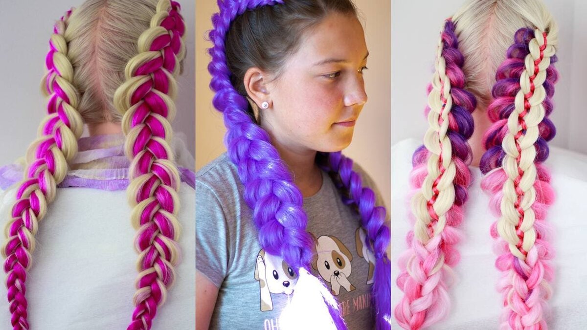 Все секреты плетения кос с канекалоном. Как заплести цветные косы.
