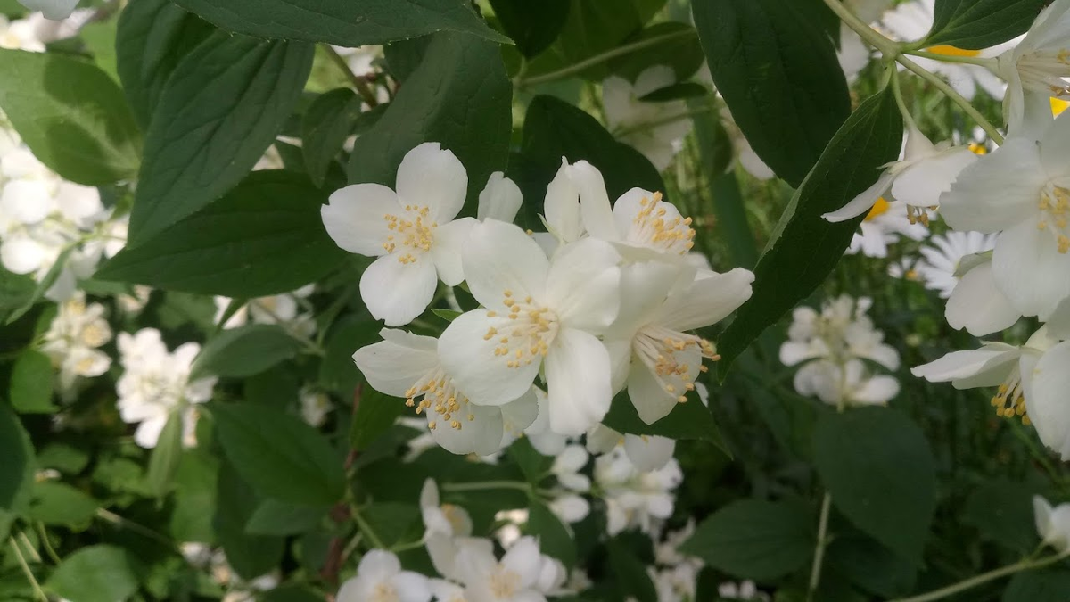 Возможно у меня не самые лучшие фото, но я очень сильно люблю жасмин. Именно он ассоциируется с первым летним месяцем. Его цветения я очень жду и очень переживаю: как бы не пропустить. Вдруг погода не позволит или я просто не выберусь в нужное время туда, где он цветет. А у меня многолетняя традиция - каждое лето, собираю три маленькие веточки жасмина "на удачу". И они еще долго наполняют комнату ароматом и радуют сердце. Такой хрупкий нежный и ароматный цветок, он навевает воспоминание о детстве, ощущение радости и беззаботности. Желаю всем сегодня встретиться с тем, что радует. Улыбок, солнечного настроения, ощущения легкости и внутренней свободы. Пусть все будет ЗАМЕЧАТЕЛЬНО))) А приятные события и сюрпризы возвращают веру в хорошее. Дают силы жить и улыбаться жизни.