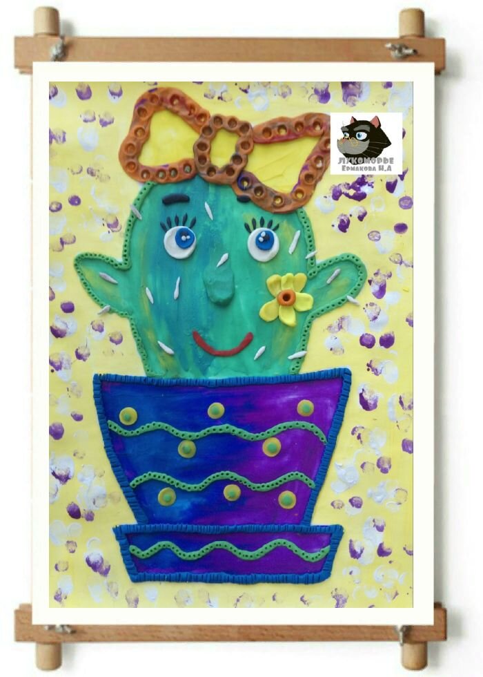 Стилизация природных форм. Пластилинография для детей Автор: Наталья Александровна Ермакова, Преподаватель дополнительного образования высшей категории, МБОУ СОШ №6 имени Героя Советского Союза А.В. Попова, город Великие Луки, Псковская область Цель: выполнение пластилинографии "Кактусы".