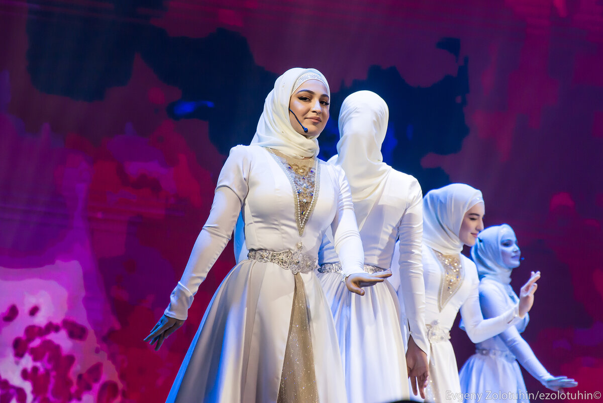 В Чечне интересная и насыщенная культурная жизнь и много местных знаменитых артистов, которых не знают в остальной России, хотя в Чечне они настоящие звезды. Во время поездки в Грозный мне удалось заполучить пригласительный и я побывал на концерте таких чеченских знаменитостей. Я был с фотоаппаратом, поэтому показываю сделанные фотографии и делюсь своими впечатлениями от мероприятия. Концерт проходил в новом роскошном концертом зале, про который стоит рассказать вообще отдельно, уж очень он хорош. Зал был полным. В Чечне, конечно, знают и слушают всех популярных артистов, но местные коллективы любят не меньше и их концерты проходят при полном аншлаге. Это было большое выступление одного из главных женские коллективов Чечни, девичьей капеллы Фирдаус. Кроме того, в качестве гостей на сцену выходили и другие чеченские знаменитости. Можно сказать, собрались все звезды. Что касается непосредственно выступления, большинство песен исполняли на чеченском, но по видеоряду на большом экране час