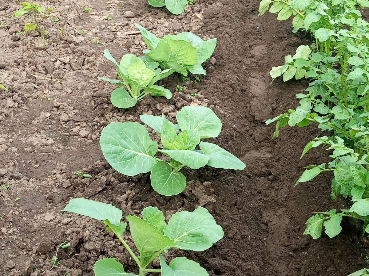 В этом году погода дождливая и капусту нам не поливать. Но одной водой ,сыт не будешь. Раннюю капусту сажала в начале мая, шли чуть ли не каждый день дожди, а капуста особо и не росла. Земля была холодная, от дождей вся забита, да и температура воздуха была низкой. И как только я посадила рассаду в землю на неё сразу напала блошка, я обработала её, а дождь всё смыл -я опять обработала, но вроде сейчас нет блошки, листики стоят зелёные. Между перерывами дождей, я подкормила капусту жидким удобрением- куриным помётом 1/10 литров воды. Я как то стараюсь поменьше химии применять, удобряю органикой. Но и много воды, органического удобрения , всё равно это мало для роста и закручивания кочанов, нужно больше солнца и тёплой погоды. В том году в это время мы уже ели свою раннюю капусту, а в этом всё опаздывает с ростом. Ну выглядит хорошо и чистая и листья зелёные, а только начала закручиваться в кочаны. А вот позднюю капусту, я высадила после двадцатого мая. Тоже на неё блошка налетела, но