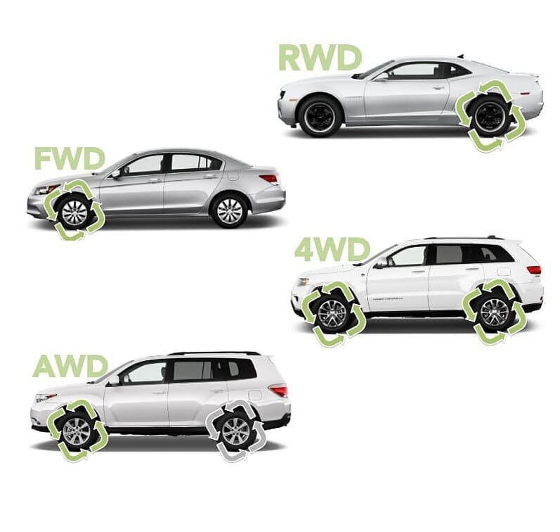 RWD (Задний тип привода). В этом типе привода двигатель передает крутящий момент на задние колеса автомобиля. Как правило, задний тип привода используется на мощных автомобилях и на пикапах. При использовании в машине заднего привода, достигается оптимальный баланс веса. Но задний привод менее эффективный и дороже обходится при производстве автомашин. ⠀ FWD (Передний тип привода). Двигатель, коробка, привод, дифференциал (который позволяет двигаться колесам с разной скоростью) объединены в один единый блок передачи крутящего момента на переднюю ось. Если для Вас важны экономия топлива и не большая стоимость автомашины, то транспортное средство с передним приводом отличный выбор для приобретения. Так как, расход топлива у автомобилей с передним приводом значительно ниже, чем у транспортных средств оснащенных задним приводом. ⠀ 4WD (Полный привод (4х4). В большинстве автомобилей с полным приводом (4WD) водитель может самостоятельно выбирать, как распределять мощность между всеми четырьм