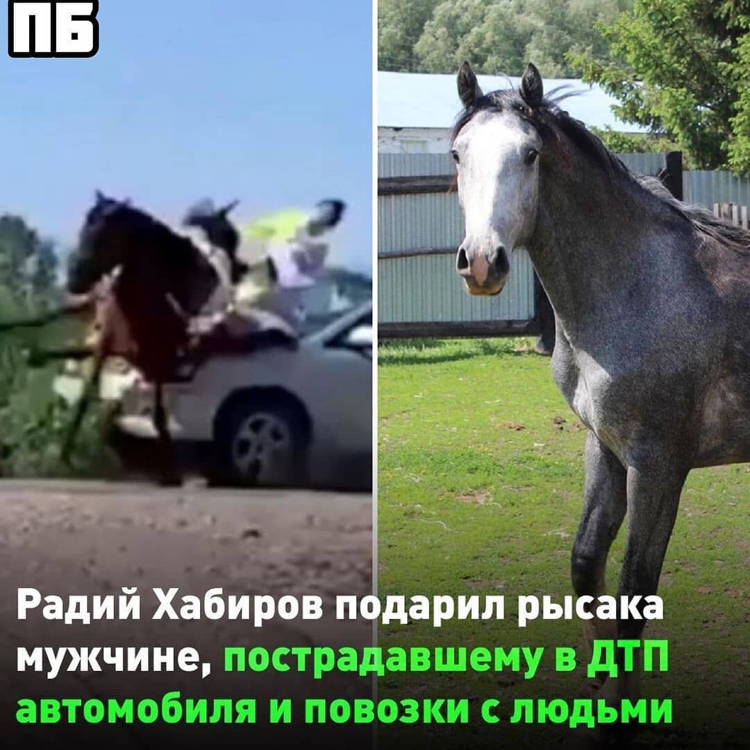 Радий Хабиров подарил рысака мужчине, пострадавшему в ДТП автомобиля и повозки с людьми