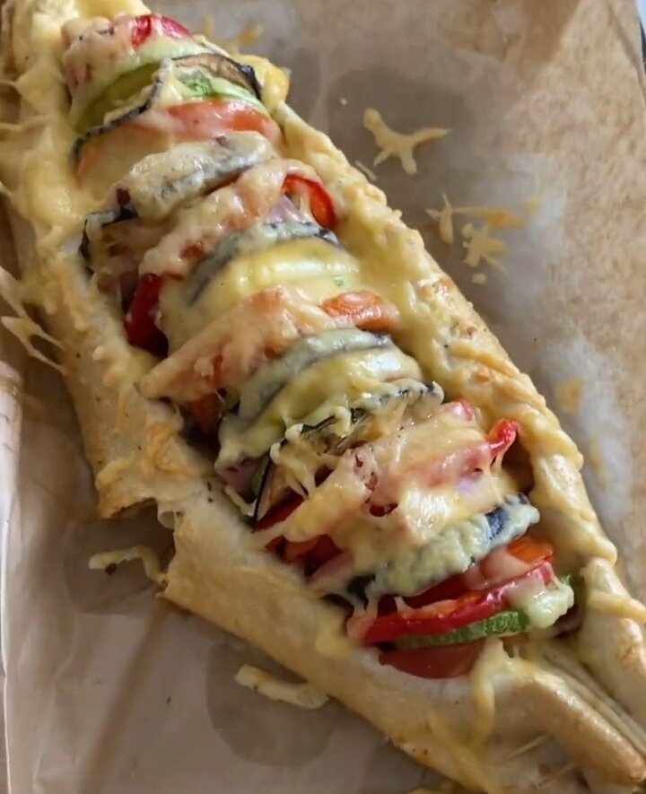 Когда в глубоко в душе ты- итальянец, а любишь всем сердцем грузинскую кухню, не остаётся ничего другого, как готовить ХАЧАПУРИ ПО - ИТАЛЬЯНСКИ🎉 Это так вкусно будто маленькие ангелы лепили для вас это своими пухлыми ручками! 1. Лаваш свернуть лодочкой, закрепив зубочисткой. При этом важно говорить ЛООООдочка, тогда получится лучше😉 2. Очень щедро смазать лодочки творожным сыром с зеленью и протёртым чесноком. 3. Нарезать тонкими кольцами ветчину (или любое другое мясо, у нас корейка), кабачок, болгарский перец, баклажан, помидор, сыр 4. Все овощи посолить, поперчить, добавить ваши любимые приправы ( у нас "Итальянские травы"), немного смазать оливковым маслом. Уложить все овощи в лодочки. 5. Посыпать тёртым сыром, смазать взбитым яйцом. 6. Запекать 20 минут при 180°. 7. Наслаждаться блюдом в приятной компании. Можно подавать с чесночным или сливочным соусом. Приятного Аппетита! Ингредиенты: Баклажан- 1 шт Лаваш тонкий - 2 шт Яйцо - 1 шт Корейка - 200 гр Помидор - 2-3 шт Болгарс