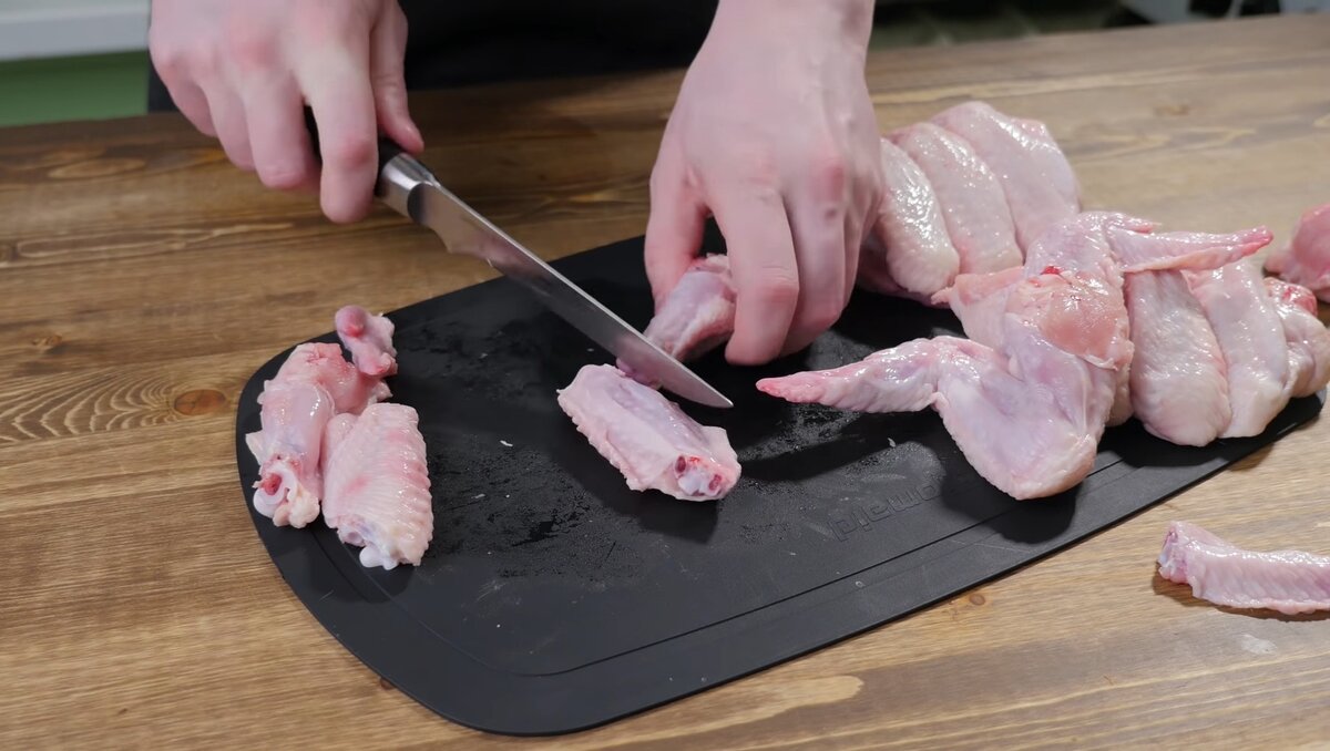 Нам понадобится: - 1 кг куриных крыльев - 2-3 ст ложек муки - 1 чайная ложка молотого перца - 1 чайная ложка паприки - 1 чайная ложка соли - кунжутное масло - 4 зубчика чеснока - кутчуп - мёд - чайная ложка уксуса Начнём готовить) 1. Крылья разделываем на три части. Тонкую крайнюю часть крыла выбрасываем. 2. Готовим нашу панировальную массу, для этого в 3 ст ложек муки добавляем чайную ложку молотого перца, чайную ложку паприки и чайную ложку соли. Всё это тщательно перемешиваем до однородной массы. 3. Важный момент, перед панировкой наши крылышки обязательно должны быть сухими, иначе панировка будет налипать комками, а этого мы не хотим. Закидываем панировочную смесь в куски крыльев, накрываем крышкой и начинаем трясти. Вуаля, панировка на месте. 4. Выкладываем наши крылья на противень. 5. Разогреваем духовку до 180-200 градусов и отправляем их готовится до золотистой корочки минут на 30- 40. 6. Пока наши крылья "греются" приступим к приготовлению соуса, для этого почистим и мелко
