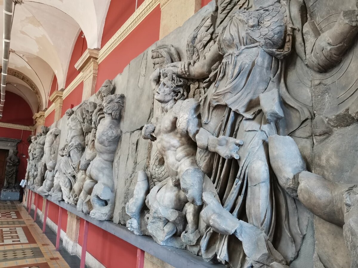 Очень узнаваем в сценах бала и Пергамский алтарь на втором ярусе галереи.