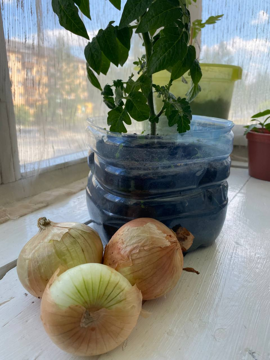Добрый день, дорогие подписчики! Если вы читаете меня давно, то знаете, что я не любитель покупных удобрений, я стараюсь все делать сам. И еще я всегда вам говорю, что всем растениям нужны питательные элементы и нужно регулярно удобрять их. Но вам я это говорю, а сам иногда забываю. И вот недавно пожелтевшие листья дошли и до моей рассады. Я всегда хорошо поливаю и не забываю это делать, но иногда забываю удобрять рассаду из-за нехватки времени. Я еще раз убедился, что если вы хотите большой урожай, то в свой огород нужно вкладывать много времени. Не получится так, что вы все посади и больше ничего делать не надо. Вот так из-за нехватки времени я забыл про рассаду и теперь на ней начали появляться желтые листья, но я не расстраиваюсь. Я огородом занимаюсь уже 5 лет и знаю, что нужно сделать, чтобы этих желтых листьев не было. У меня уже было такое в прошлом и позапрошлом году, так что волноваться не стоит. Нам понадобится 3 луковицы. Тут нужно рассчитывать и понимать какого размера ваш