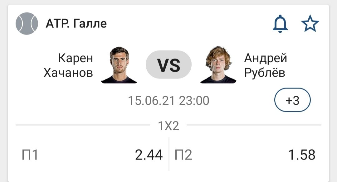 Прогноз на матч по теннису 15.06.2021, Рублев А.- Хачанов К., на основе оракула.