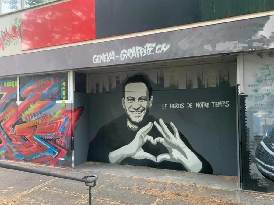 Байден и Путин должны встретиться в Женеве, поэтому к их приеду там появилось граффити с Навальным и надпись на французском «Герой нашего времени»