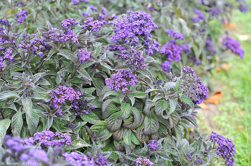 Гелиотроп как декоративное садовое растение пережил долгий период забвения – еще в недавнем прошлом его считали «старомодным» и «бабушкиным» цветком. Сейчас он снова обретает популярность – в многом благодаря появлению новых сортов. К тому же гелиотроп – настоящая находка для тех, кто любит не только красивые, но и душистые цветы: его аромат чрезвычайно приятен. Высота растений различна зависимости от сорта: 40-60 см для обычных сортов и 20-30 см – для компактных. Оттенки цветения – фиолетовые, лиловые, сиреневые, пурпурные, есть несколько сортов с белыми цветками. Зацветают гелиотропы во второй половине лета и цветут обильно, пышно и долго – до поздней осени. Сочетать их лучше с осеннецветущими растениями: цинниями, бархатцами, рудбекиями, календулой, эхинацеей и пр. Можно высаживать гелиотропы в цветниках и бордюрах, хорошо смотрятся они в контейнерной посадке. Гелиотроп долгое время размножали только черенками, и это создавало садоводам большие сложности. Современные сорта можно се