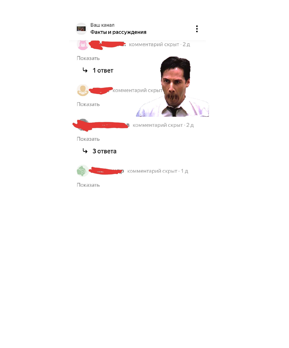 На этом скриншоте наглядно показано, как работает алгоритм модерации комментариев на Дзене. Ну, то есть, очень усердно работает. Настолько усердно, что один из читателей статьи, который не в курсе этих тонкостей, поначалу яростно набросился на меня, автора, с вопросом: зачем я скрываю все подряд комментарии, ведь в них и намека не было ни на мат, ни на оскорбления? Да чего греха таить, наверно многие из нас начинали свое знакомство с Дзеном с этого недоумения. Сейчас, по прошествии определенного отрезка времени лично я себе это могу объяснить только техническим несовершенством сервиса. Дзен, действуя по единственно правильной логике стремится выбирать из двух неизбежных зол меньшее. Выбор то невелик: или открутить гайки полностью - тогда из всех щелей появятся искренние, но нецензурные, оскорбительные и чаще всего с нотками экстремизма комментарии. Второй вариант - обучить искусственный алгоритм скрывать абсолютно всё, что отдаленно попахивает деструктивом и вообще значительным откло