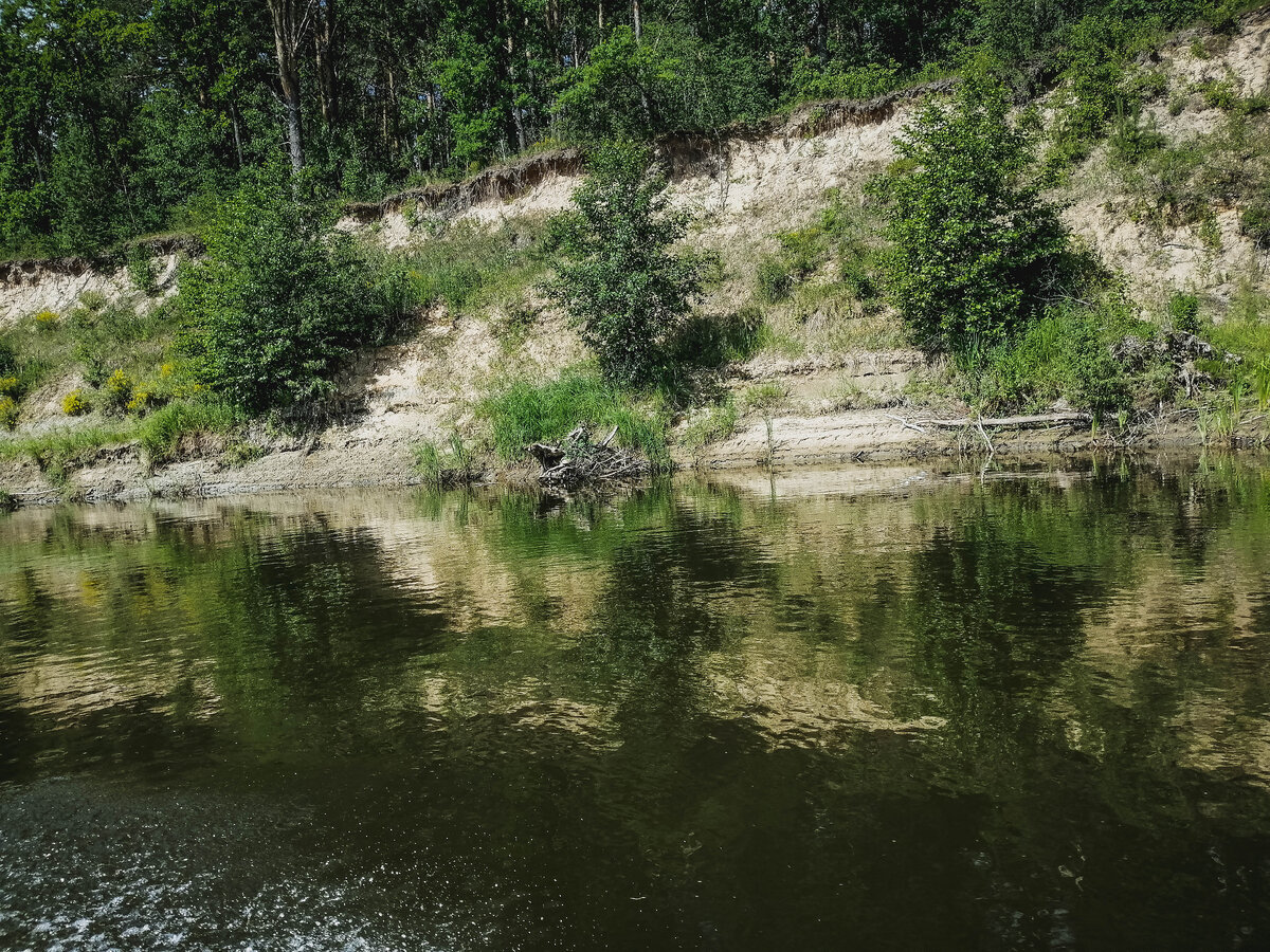 Второй типаж мест – это различные укрытия, в которых он днем поджидает зазевавшуюся рыбу или наоборот курсирует вдоль них, врываясь туда, чтобы перекусить ничего не подозревающей добычей. Чаще всего это завалы из топляка у подмытого основной струей берега или участки за различными береговыми аномалиями, в которых течение как правило слабее. Причем облов таких мест возможен уже не только с берега, но и во время сплава на лодке. В моем случае второй вариант даже предпочтительнее, так как в основном на Днепре такие участки находятся под обрывистым берегом, и особо там не походишь.