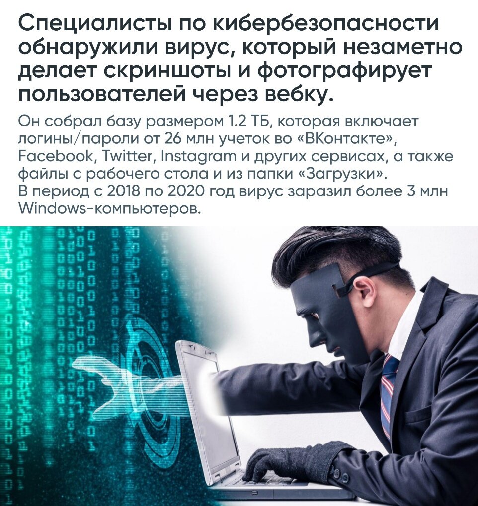 Специалисты по кибербезопасности обнаружили вирус, который незаметно делает скриншоты и фотографирует пользователей через вебку.