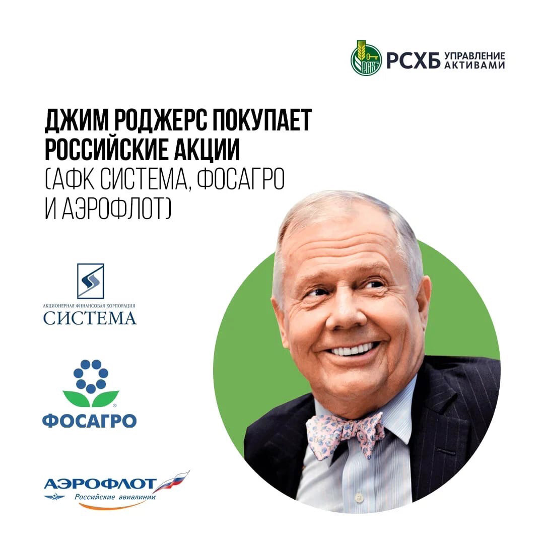 Американский инвестор Джим Роджерс в мае приобрёл акции компании АФК «СИСТЕМА». Это не первый российский актив в портфеле инвестора. Ранее он уже купил бумаги «ФОСАГРО» и «АЭРОФЛОТ», а также государственные облигации.⠀