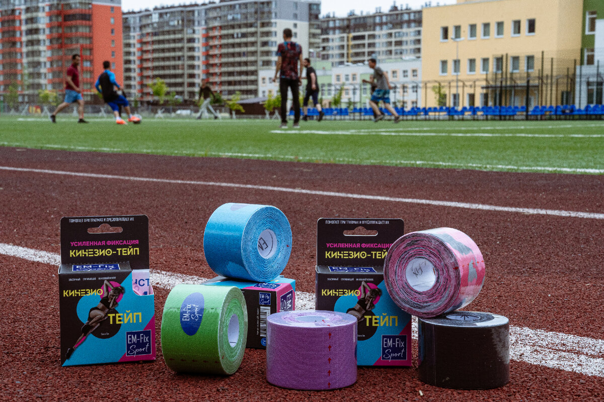 Травмы могут получить не только профессиональные спортсмены, но и обычные люди, которые занимаются тяжелым физическим трудом. Реабилитация ушибов, растяжений и вывихов может проходить более эффективно, если использовать кинезио тейпы EM-Fix. Кинезиотейпирование считается наиболее эффективным способом профилактики и лечения профессиональных и случайных травм. Травмированный участок тела фиксируется в нужном положении и быстро восстанавливается. EM-Fix Sport усиленной фиксации для различных видов спорта Кинезио тейп EM-Fix Sport на 100% состоит из качественного очищенного хлопка, который отлично тянется и не вызывает аллергических реакций. Специальная клеевая основа позволяет использовать пластырь в бассейне или на море. После высыхания он будет сохранять свои положительные свойства на протяжении семи суток. Тейпы EM-Fix Sport снижают риск получения травм при занятиях различными видами спорта. Пластырь поможет быстро восстановить поврежденную ткань и мышцы при растяжениях, ушибах и вы
