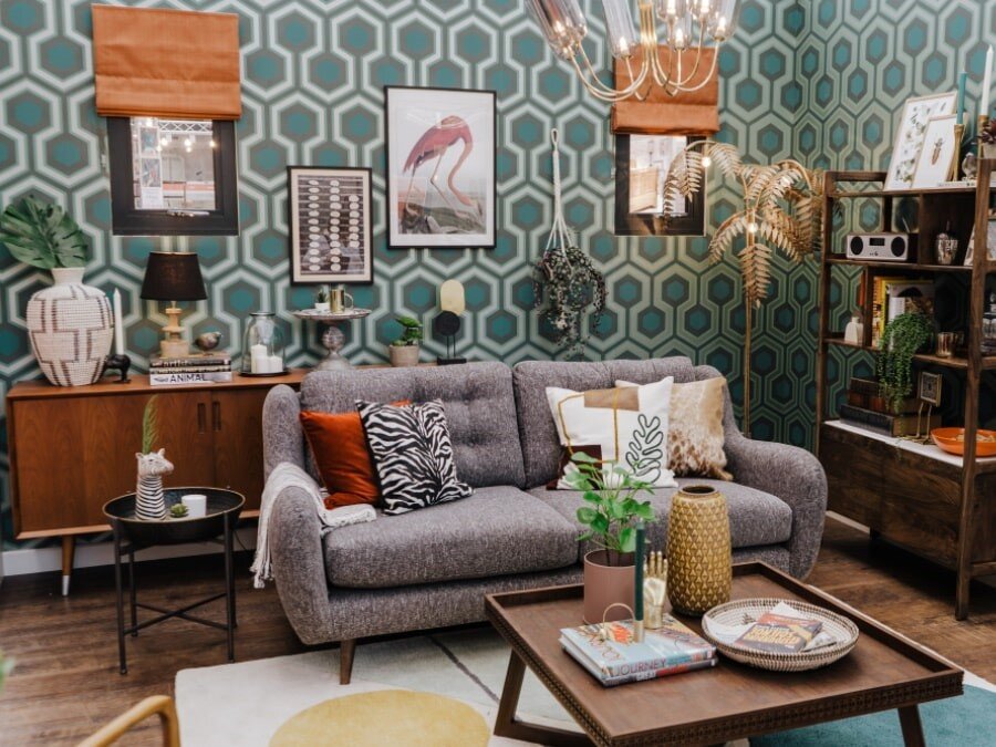 Чтобы не перегрузить помещение и придать ему гармоничный облик, используйте орнамент в нескольких размерах. Например, более крупный рисунок на одной акцентной стене и тот же узор, но мелкий, на декоративных подушках или шторах.