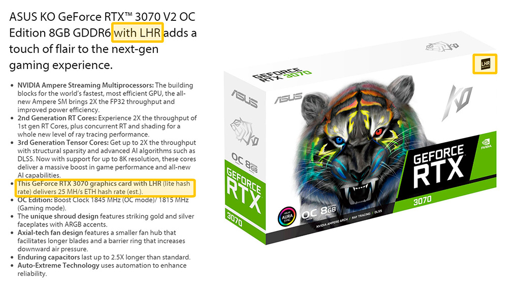 В ассортименте ASUS появились майнинг-ограниченные видеокарты серии LHR