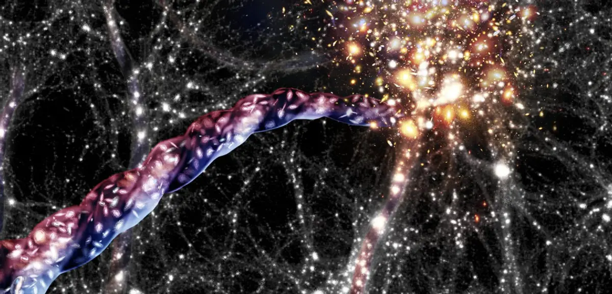 Когда мы думаем о самых больших вращающихся объектах во Вселенной, в первую очередь на ум приходят планеты, звезды и галактики. Но, где кончается это безумие? Астрономы обычно предполагали, что скопления галактик - самые большие вращающиеся структуры во Вселенной. Хотя их вращение относительно медленное, тем не менее, его можно измерить. Куда более сложную вращающуюся структуру даже представить. Однако потсдамские ученые под руководством космолога Ноама Либескинда обнаружили, что есть даже гораздо более крупные структуры, которые, кажется, вращаются. Это целые волокна галактик, которые могут растягиваться на сотни миллионов световых лет. Исследователи пришли к такому выводу после анализа движения более 17000 волокон. Данные, собранные в рамках программы SDSS (Sloan Digital Sky Survey), включали информацию о скоростях галактик, составляющих эти огромные волокна. К удивлению астрономов, галактики вращаются вокруг центральной оси. Одна из галактик вращалась вокруг оси со скоростью до 36