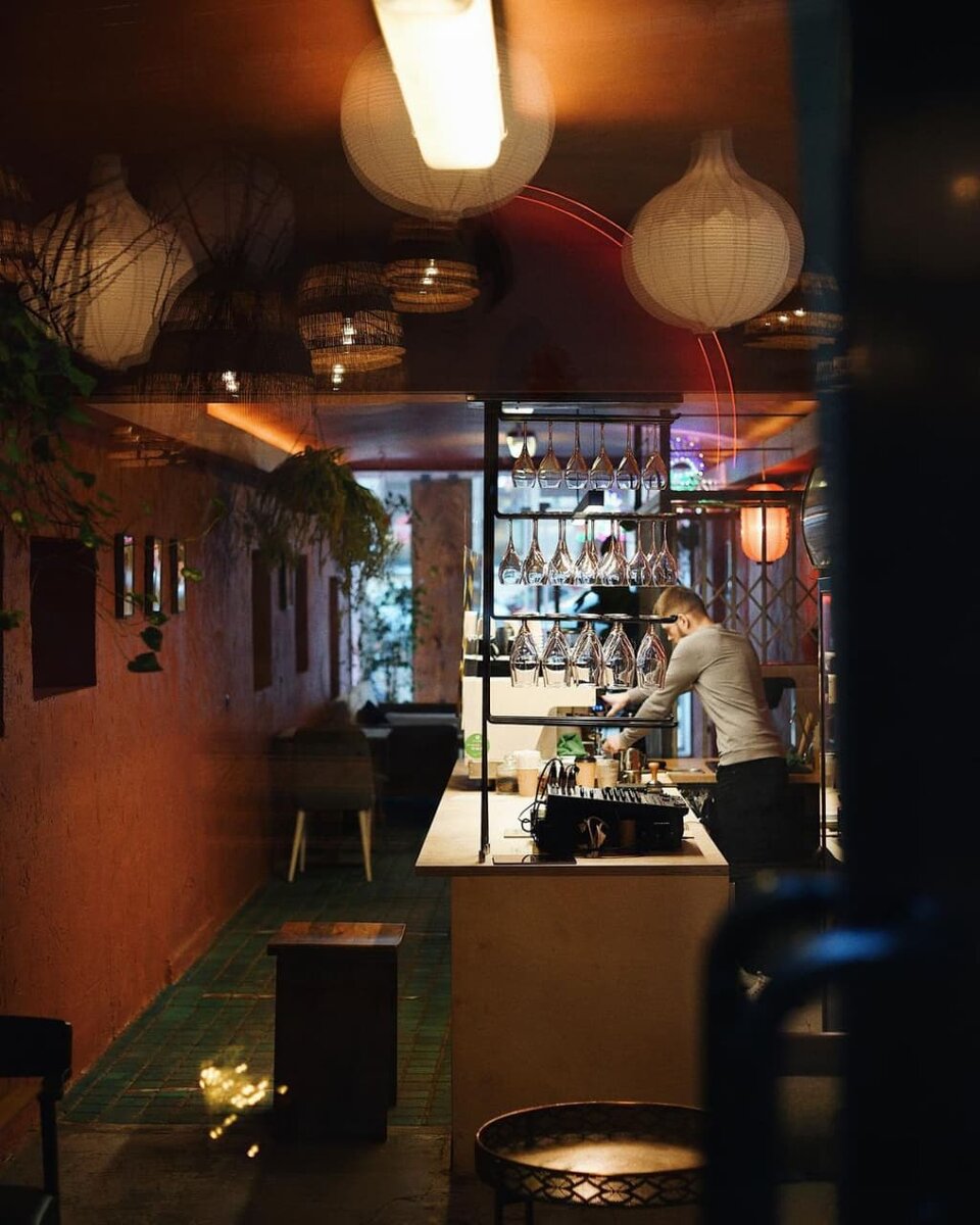 После японских изысков прямо по курсу бар «Сухом законе», который в конце 2020 года открыла команда Josef Spirits Bar («Голицын Лофт») и актерский агент Дмитрий Савельев. На название создателей вдохновили карантинные ограничения. Внутри полный арт! Надписи, картины, расписанные камни, стена автографов.