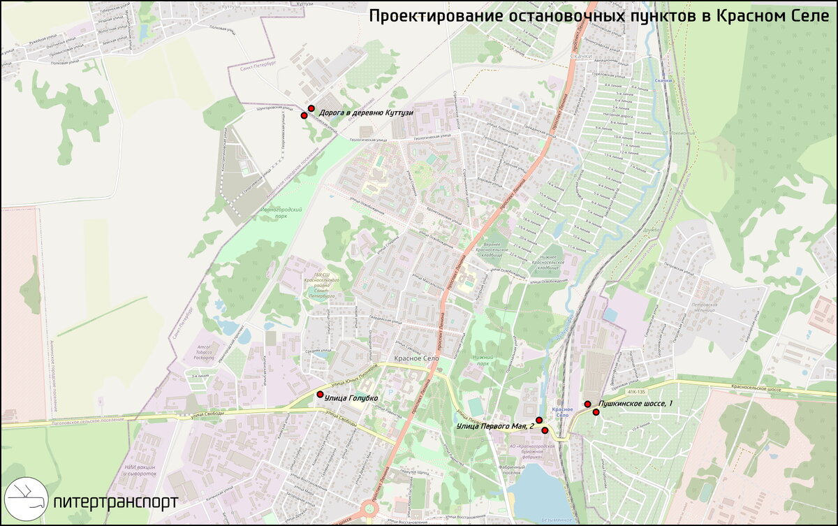 "Дирекция транспортного строительства" в рамках открытого конкурса в электронной форме со стартовой стоимостью 12,66 млн рублей начала поиск подрядчика для проведения инженерных изысканий и разработки проектной документации по планируемым остановочным пунктам в Красносельском районе. "Питертранспорт" изучил техническое задание. Итак, до 23 ноября 2021 года необходимо будет подготовить документы по 18 остановочным пунктам: Отметим, что из всех перечисленных адресов капитальные работы требуются лишь на половине остановочных пунктов. На остальных объектах, по сути, уже есть готовые посадочные площадки - там необходимо только разместить знак 5.16 и нарисовать разметку. © Питертранспорт