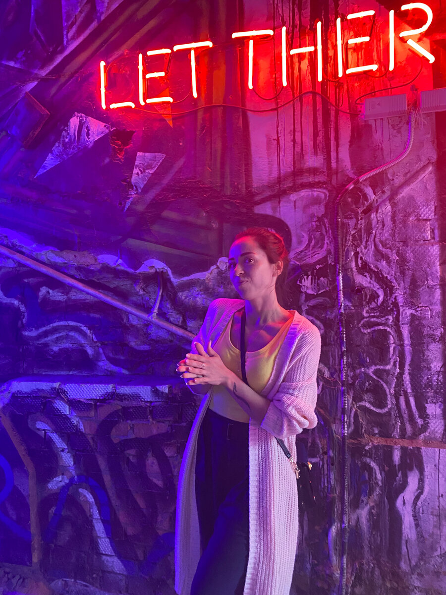 Именно так я потирала рученьки, когда муж сказал поехали в одно интересное местечко! Сколько в Питере всяких крутых и интересных мест, мне кажется и не сосчитать! Питер вообще сам по себе крутой и ооооочень интересный, и очень насыщенный город! Здесь даже просто по улицам в центре гуляешь и офигеваешь от красоты зданий, людей! Атмосфера невероятная! Так, периодически с семьей и выбираемся куда-нибудь. Причем самое интересное здесь, идешь себе идешь спокойно, разглядываешь архитектуру, любуешься, но даже и не подозреваешь, что если нырнуть в какую-нибудь арку ( ну, если знать, конечно, куда точно нырять) можно попасть в абсолютно другое пространство! Как у нас и получилось с этим местом))) А называется оно "Let there be art" (расположен он по адресу: Литейный проспект, 62). В середине здания видишь темную арку, в конце красивая картина на всю стену и, горящая вывеска. Похоже на вход в подземелье. Дорожка выполнена из деревянного настила, по бокам лежит красивый песочек, конечно же хо