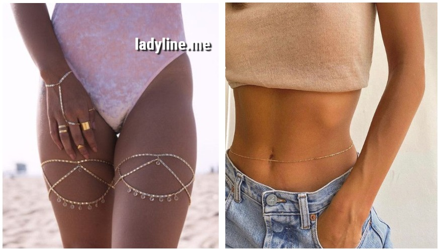 Стильные и современные украшения добавят определенную стилистику и шикарную изюминку образам. Пояс из жемчуга или крупных страз - украшение, которое можно смело комбинировать с раздельным купальником любого фасона. Для создания определенного стилистического образа, летом 2021 года можно использовать портупеи, выполненные из страз разных размеров. Многоярусное украшение лучше всего комбинировать с однотонными приталенными нарядами. Браслеты для ног - это новый необычный тренд летнего сезона, который добавит колоритных восточных ноток вашим повседневным или же праздничным аутфитам. Тонкая изящная цепочка для талии - незаменимый аксессуар, который лучше всего сочетать с топами. Тренд на вещи с откровенными вырезами на спине был дополнен тонким многослойным украшениями, которые могут быть выполнены, как из цепочек, так и мелких страз. Летние образы заиграют новыми красками, если купальники комбинировать с громоздкими перстнями, тонкими золотыми браслетами через палец, а также эффектными це