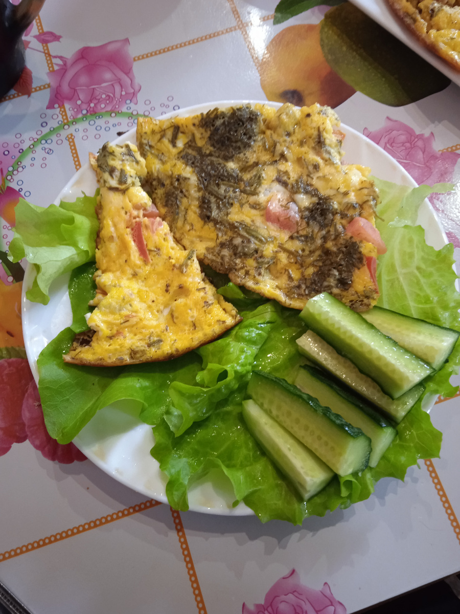 Всем привет✋👋 На улице стоит невыносимая жара, слишком никто кушать не хочет, даже маленькие детки, но все таки мне удалось их накормить, смотрим чем. Завтрак - омлет запеченный с сыром, помидором, укропом. Лучше запечь в духовке тогда получается невыносимо вкусно, я же запеканку в глубокой сковороде на медленном огне. Подаю на листьях салата и со свежим огурцом. С утра готовлю освежающий напиток на весь день в составе брусника, клюква, сушенные корочки апельсина, сушеная мята. На обед готовлю окрошку в такой жаркий день кроме холодных блюд ничего кушать и не хочется. В нашу окрошку входит: картошка, репчатый лук, яйцо, огурец, куриное мясо и много много различной зелени у меня листья салата, петрушка, замороженный укроп, черемша. Полученный салат солю, перчу добавляю майонез и хорошо перемешиваю. Затем добавляю обычную воду либо минералку до состояния жидкого супа, затем добавляю намного уксуса или лимонной кислоты чтобы добиться кислинки. Такую окрошку у нас любят все. Себе