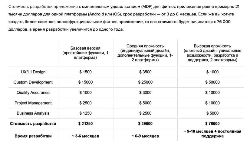 Под номером один приложение для фитнес-клуба, где происходит запись на персональную тренировку к конкретному тренеру в конкретном клубе. Ниже скрин ответа по стоимости.