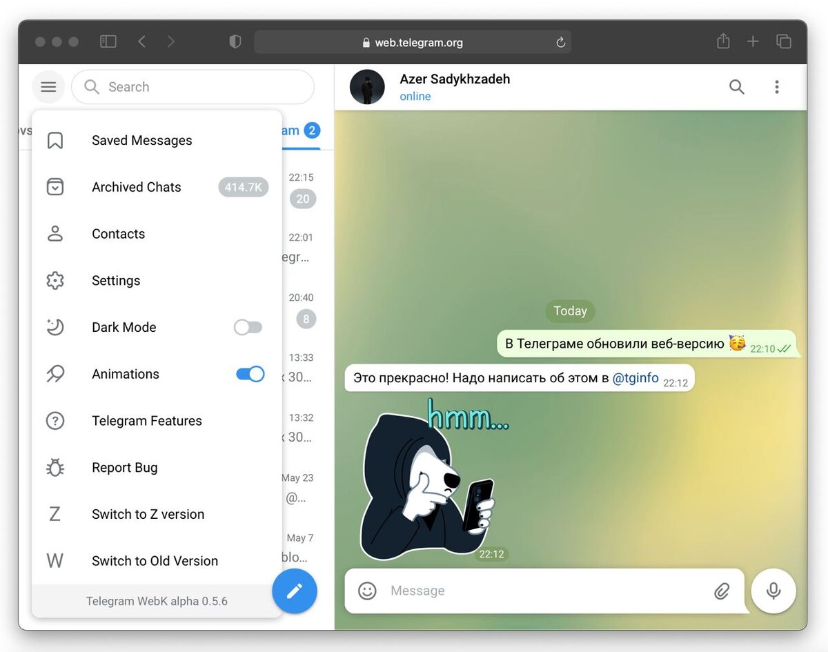 По адресу web.telegram.org теперь открывается одна из двух новых версий: WebK или WebZ.
