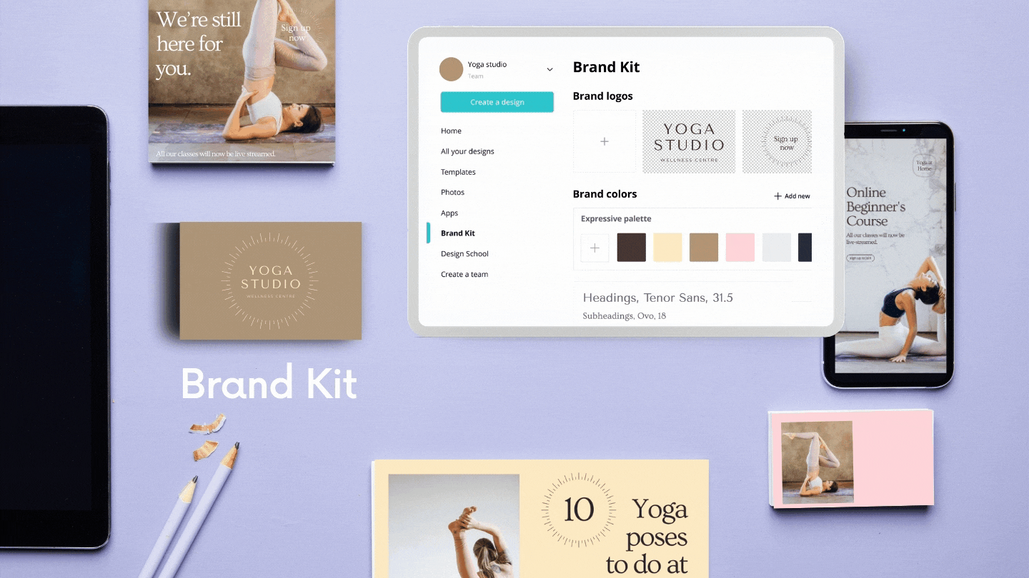 Дает возможность легко поддерживать все ваши проекты в едином фирменном стиле. Просто загружаете цвета, логотип и шрифты вашего бренда в Canva, чтобы сохранить и применить их к вашим дизайнам. В дальнейшем это сэкономит вам время на работу. Можно применить свой бренд к любому шаблону в Canva одним кликом. Если вы работаете в команде, ваши товарищи по команде смогут получить доступ к вашему фирменному набору и применить его к своим дизайнам. Чтобы сделать все еще проще, вы можете создавать фирменные шаблоны для своей команды, чтобы использовать и редактировать их в Canva.
