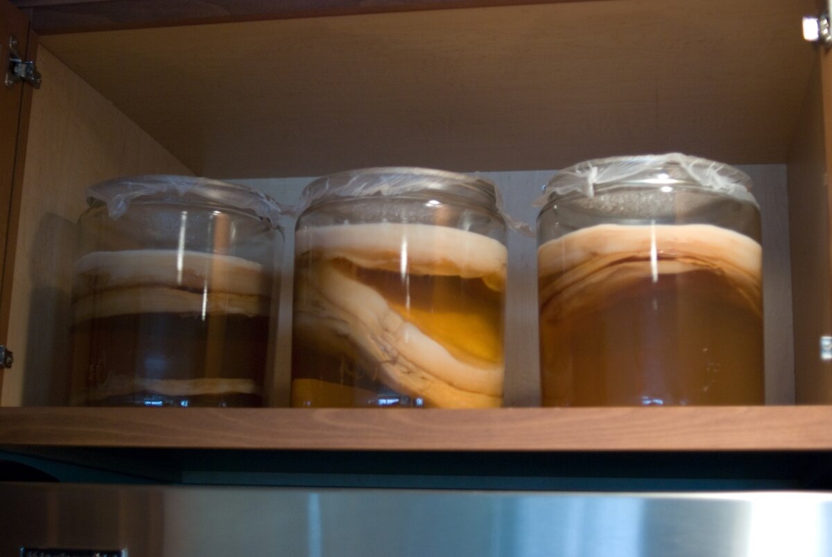 4) Правильно ли вы «подкармливаете» свой медузомицет? Если пропорции соблюдены неверно, то из-за недостатка углекислого газа в настое гриб опустится вниз.